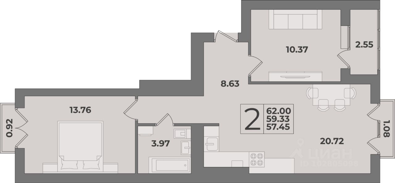 Общая площадь62 м²