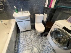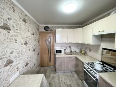 В квартире косметический ремонт. В комнатах, коридоре и кухне — ламинат, санузел — плитка. Стеклопакеты. Для вас остаётся качественный и стильный кухонный гарнитур, газовая плита, микроволновка, холодильник, кухонный стол, стиральная машинка, диван, телевизор, стенка в комнате, шкаф в коридоре .
