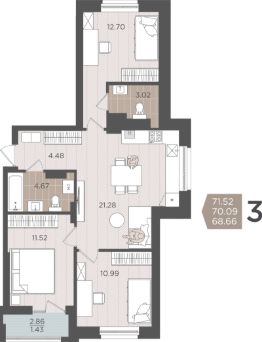 Продаётся 3-комнатная квартира в строящемся доме (Дом 3 (1 этап)), срок сдачи: IV-кв. 2028, общей площадью 70.09 кв.м., на 6 этаже.