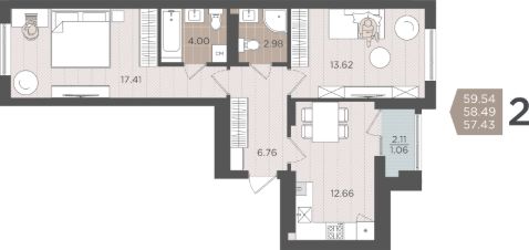 Продаётся 2-комнатная квартира в строящемся доме (Дом 3 (1 этап)), срок сдачи: IV-кв. 2028, общей площадью 58.49 кв.м., на 6 этаже.