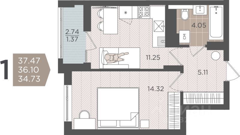 Продаётся 1-комнатная квартира в строящемся доме (Дом 3 (1 этап)), срок сдачи: IV-кв. 2028, общей площадью 36.1 кв.м., на 3 этаже.