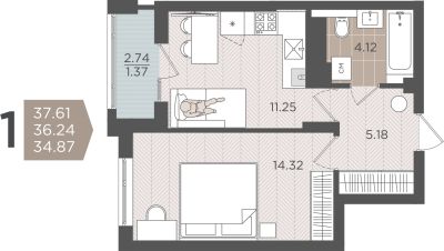 Продаётся 1-комнатная квартира в строящемся доме (Дом 3 (1 этап)), срок сдачи: IV-кв. 2028, общей площадью 36.24 кв.м., на 1 этаже.