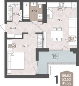 Продаётся 1-комнатная квартира в строящемся доме (Дом 3 (1 этап)), срок сдачи: IV-кв. 2028, общей площадью 52.52 кв.м., на 6 этаже.