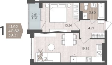 Продаётся 1-комнатная квартира в строящемся доме (Дом 3 (1 этап)), срок сдачи: IV-кв. 2028, общей площадью 40.62 кв.м., на 2 этаже.