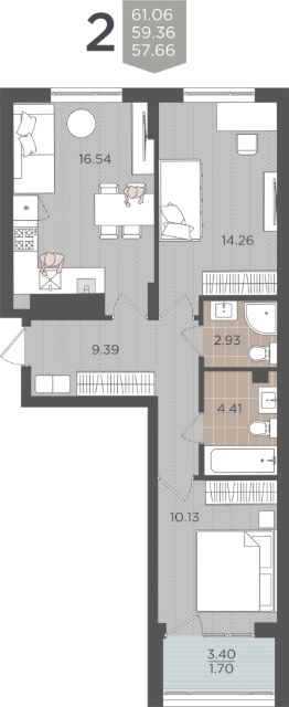 Продаётся 2-комнатная квартира в строящемся доме (Дом 3 (1 этап)), срок сдачи: IV-кв. 2028, общей площадью 59.36 кв.м., на 1 этаже.