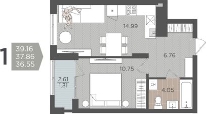 Продаётся 1-комнатная квартира в строящемся доме (Дом 3 (1 этап)), срок сдачи: IV-кв. 2028, общей площадью 37.86 кв.м., на 1 этаже.