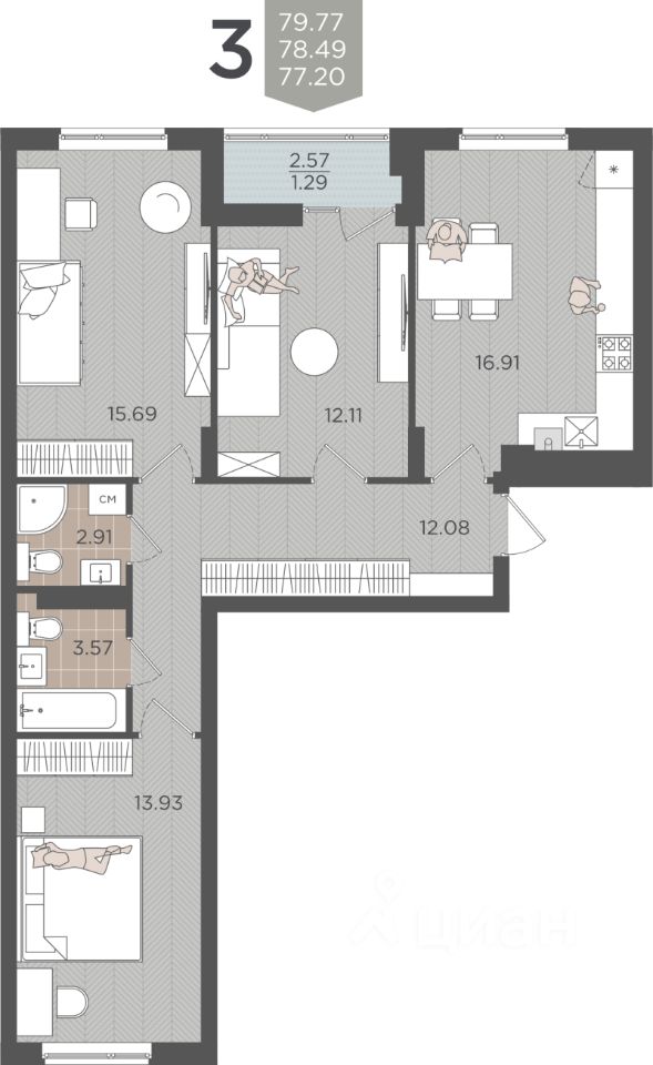 Продаётся 3-комнатная квартира в строящемся доме (Дом 3 (2 этап)), срок сдачи: IV-кв. 2028, общей площадью 78.49 кв.м., на 6 этаже. Жилой квартал "SEVEN" - Комплекс из семи 9-ти этажных домов - Современные и комфортные планировки - Класс энергоэффективности В (высокий) - Огороженная и охраняемая территория внутреннего двора - Полноценный пост охраны - Видеонаблюдение - Видеодомофоны с возможностью контроля доступа с смартфона - Отделка подъездов по дизайн проекту - Алюминиевые входные группы - Проходные подъезды - Качественные и безопасные входные двери - Бесшумные грузопассажирские лифты с остановкой в уровень земли и отделкой из нержавеющей стали - Качественные серый ключ - Автономное газовое отопление - Окна из цветного профиля - Лоджии остеклены (алюминиевые ограждающие конструкции) - Окна в пол и архитектурные балконы на верхних этажах - Современное благоустройство двора с детскими площадками, местами отдыха взрослых, площадка для стрит-бола и занятий спортом, обустроенная площадка для выгула собак. Сделайте ваш выбор в пользу высокого качества жизни. Сданный дом ( дом 1 ) : + Безналичный расчет + Рассрочка на 2 года + Ипотека под готовое жилье + Материнский капитал + Военная ипотека Строящийся дом ( дом 2 ) : + Субсидированная ипотека (IT-ипотека и семейная ипотека) + Материнский капитал + Военная ипотека Не упустите возможность приобрести жилье в ЖК "Seven". Ждем вашего звонка для получения дополнительной информации и организации просмотра.