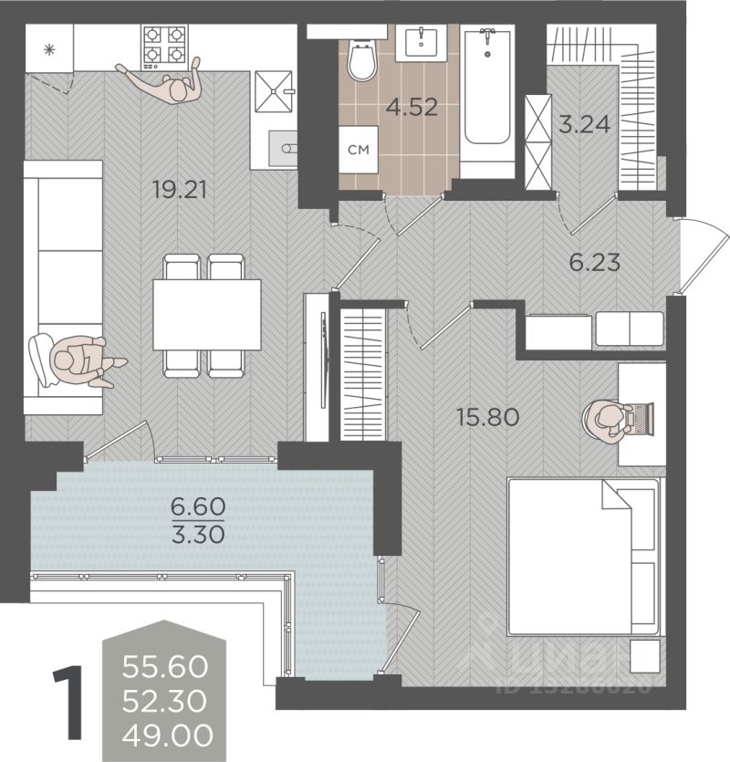 Продаётся 1-комнатная квартира в строящемся доме (Дом 3 (2 этап)), срок сдачи: IV-кв. 2028, общей площадью 52.3 кв.м., на 8 этаже.