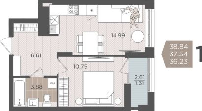 Продаётся 1-комнатная квартира в строящемся доме (Дом 3 (2 этап)), срок сдачи: IV-кв. 2028, общей площадью 37.54 кв.м., на 7 этаже.