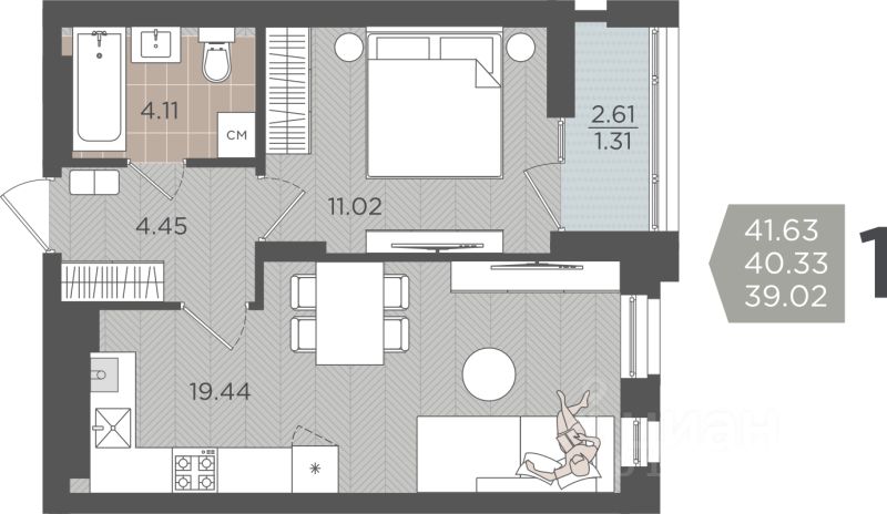 Продаётся 1-комнатная квартира в строящемся доме (Дом 3 (2 этап)), срок сдачи: IV-кв. 2028, общей площадью 40.33 кв.м., на 5 этаже.