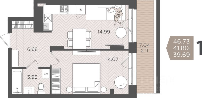 Продаётся 1-комнатная квартира в строящемся доме (Дом 3 (2 этап)), срок сдачи: IV-кв. 2028, общей площадью 41.8 кв.м., на 2 этаже.
