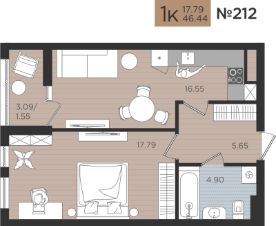 Продаётся 1-комнатная квартира в строящемся доме (Дом 4), срок сдачи: I-кв. 2027, общей площадью 46.44 кв.м., на 2 этаже. Новые жилые дома от Специализированного застройщика "Самолет Калининград Плюс" расположены в г. Калининград на ул. Советский проспект.