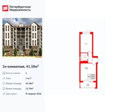 Удобная, классическая, функциональная европланировка, большая кухня-гостиная 17.62 м², вместительная прихожая 4 м². Общая площадь квартиры - 41.38 м², жилая 13.79 м², высота потолка 3 м.