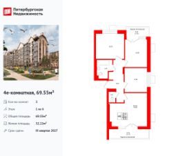 Удобная, классическая, функциональная европланировка, большая кухня-гостиная 18.85 м², вместительная прихожая 8.07 м². Общая площадь квартиры - 69.55 м², жилая 32.22 м², высота потолка 3 м.