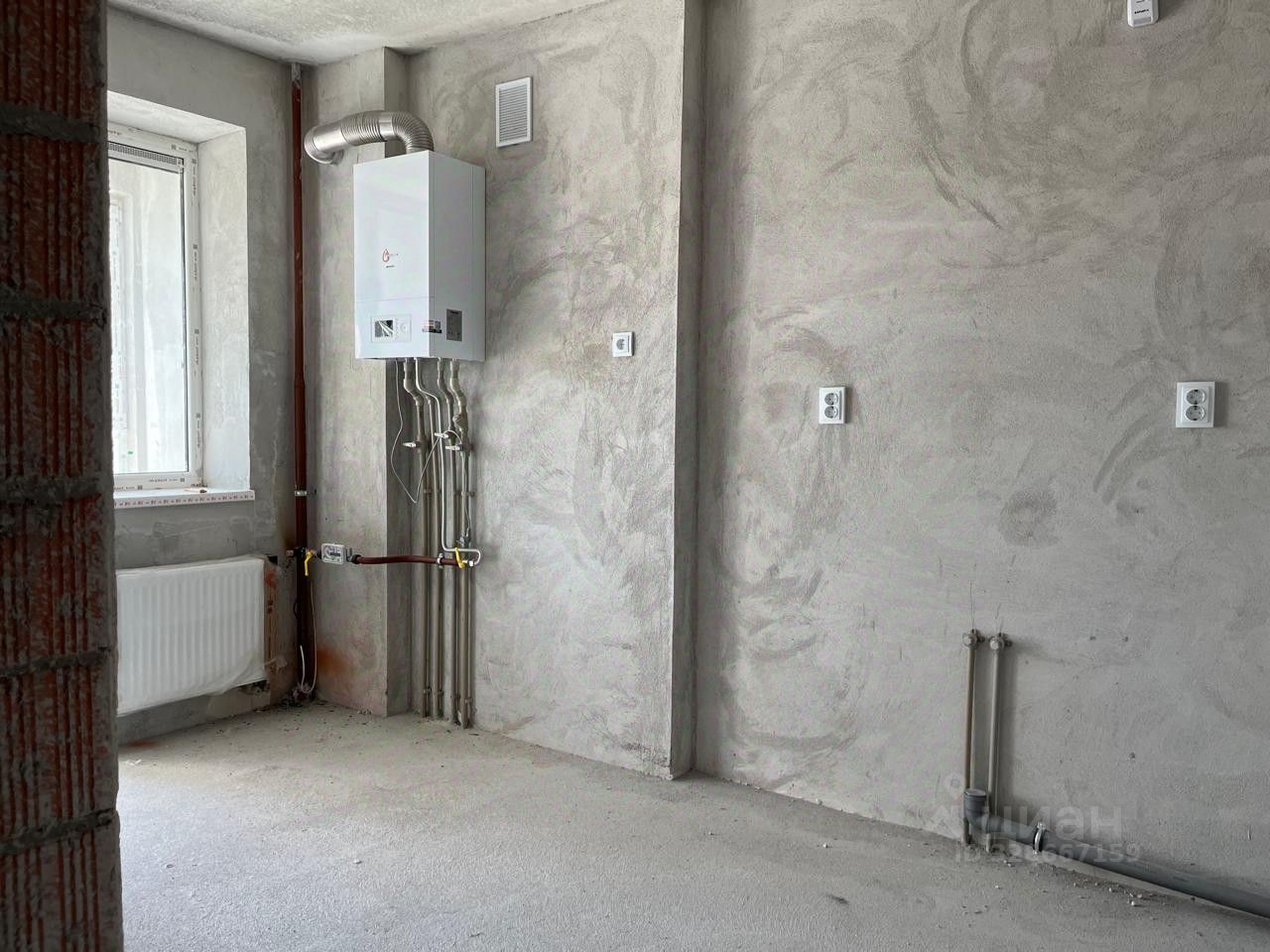 Состояние: Качественный серый ключ. Ровная стяжка пола, оштукатуренные стены, разводка электрики.