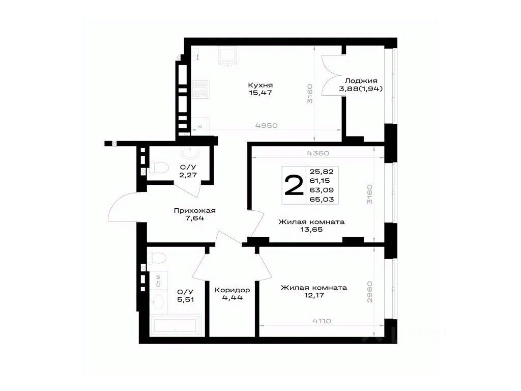 Продается 2-комн. квартира, 63,09 м²