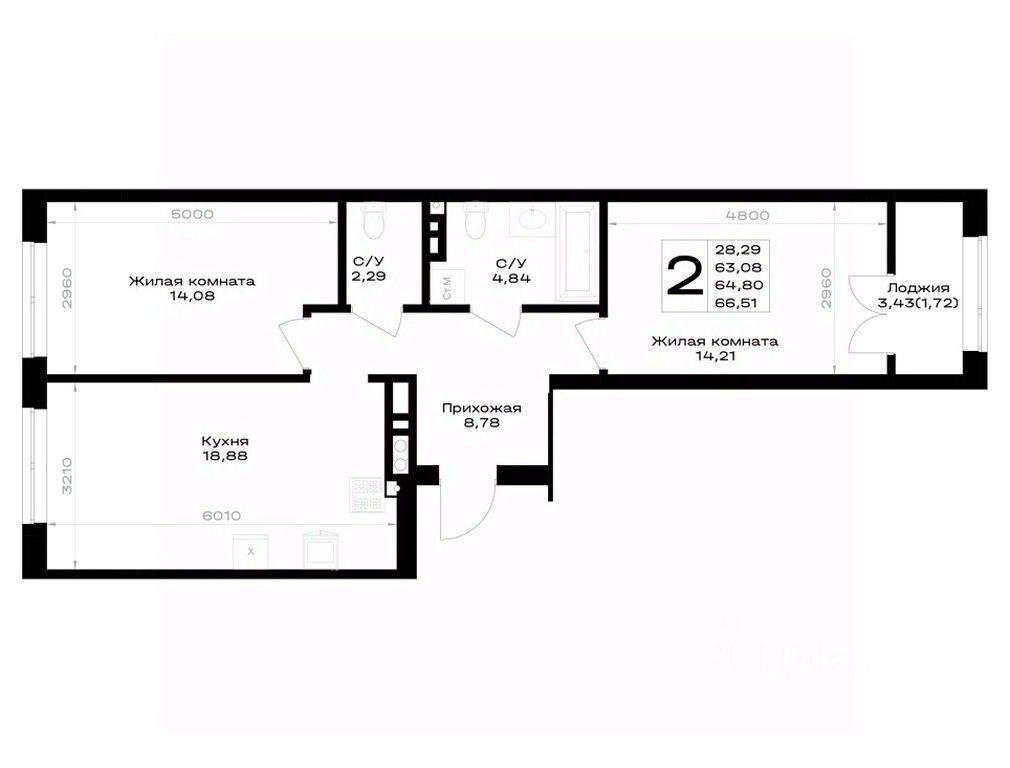 Общая площадь64,8 м²