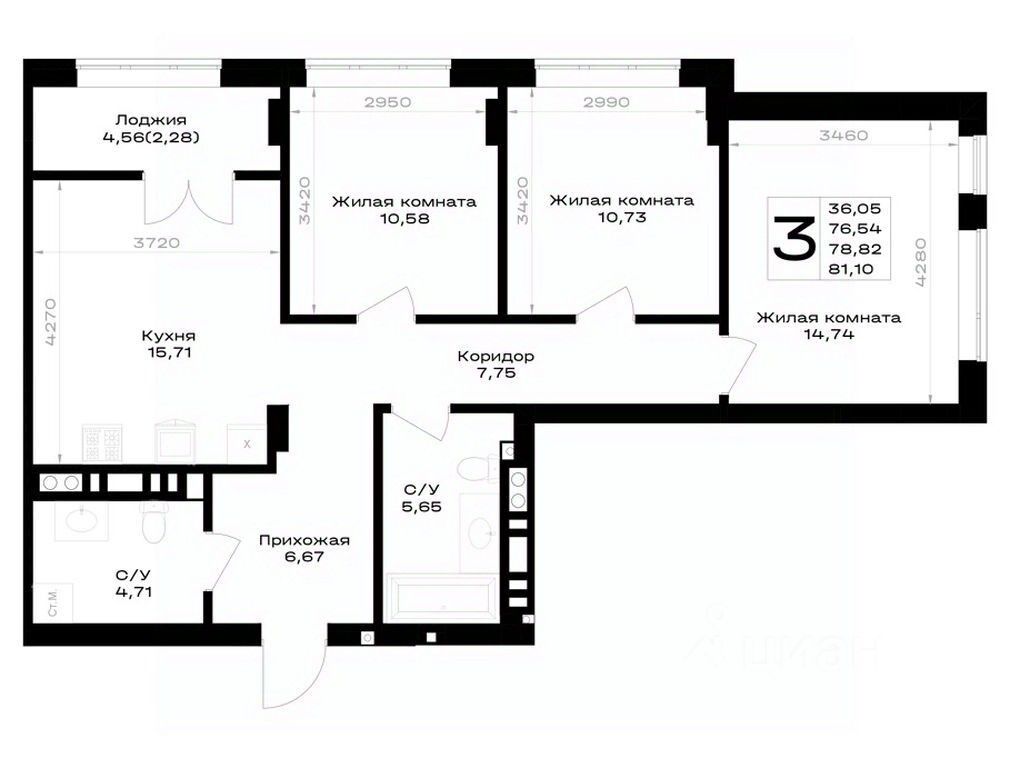 Общая площадь78,82 м²