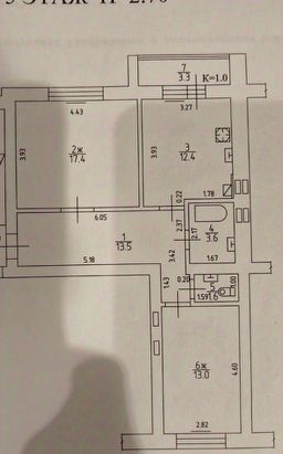 Общая площадь: 61.5м²
