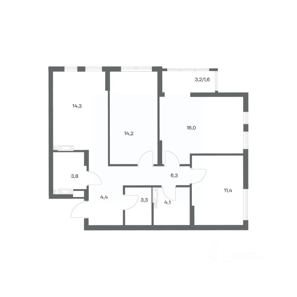в Гагарина 30 от компании ГК "ТРЕСТ". Площадь кухни 14.3 м². Жилой комплекс комфорт-класса "Гагарина 30" расположен в Ленинградском районе Калининграда на улице Юрия Гагарина. Жилой комплекс включает в себя три корпуса высотой 9-18 этажей. Срок сдачи намечен на 1 квартал 2028 года.