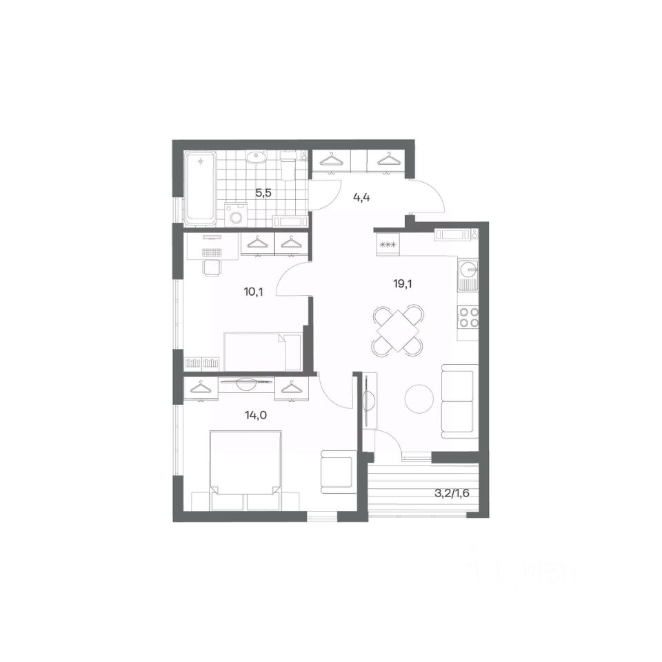 в Гагарина 30 от компании ГК "ТРЕСТ". Площадь кухни 19.1 м². Жилой комплекс комфорт-класса "Гагарина 30" расположен в Ленинградском районе Калининграда на улице Юрия Гагарина. Жилой комплекс включает в себя три корпуса высотой 9-18 этажей. Срок сдачи намечен на 1 квартал 2028 года.