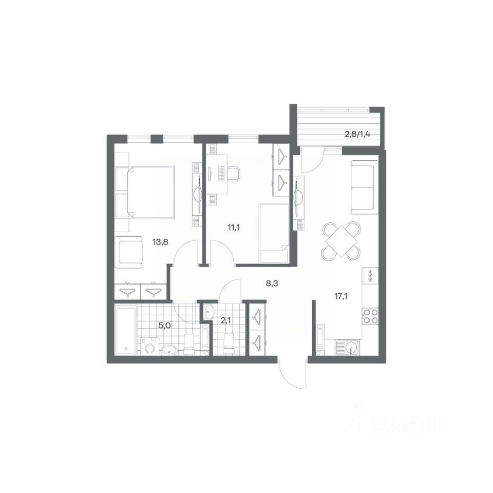 в Гагарина 30 от компании ГК "ТРЕСТ". Площадь кухни 17.1 м². Жилой комплекс комфорт-класса "Гагарина 30" расположен в Ленинградском районе Калининграда на улице Юрия Гагарина. Жилой комплекс включает в себя три корпуса высотой 9-18 этажей. Срок сдачи намечен на 1 квартал 2028 года.