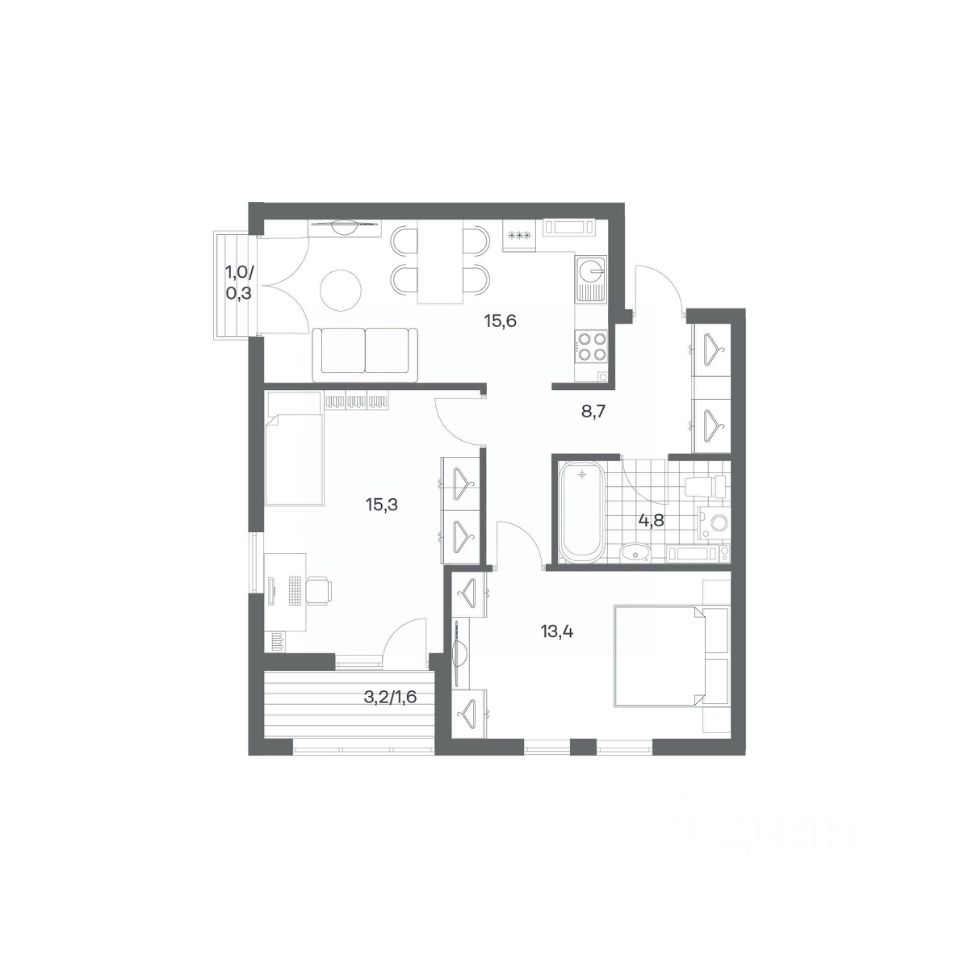 в Гагарина 30 от компании ГК "ТРЕСТ". Площадь кухни 15.6 м². Жилой комплекс комфорт-класса "Гагарина 30" расположен в Ленинградском районе Калининграда на улице Юрия Гагарина. Жилой комплекс включает в себя три корпуса высотой 9-18 этажей. Срок сдачи намечен на 1 квартал 2028 года.