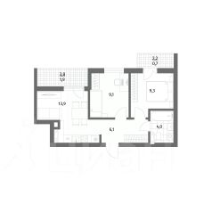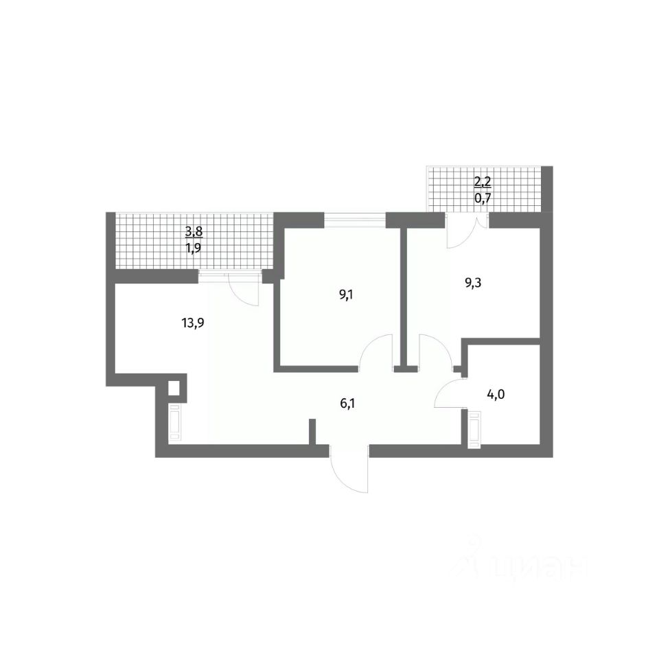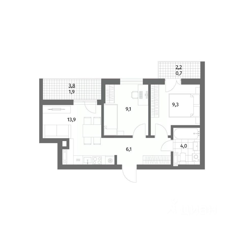 Продается квартира площадью 45 м² на 7 этаже 2 секции в Речной парк от компании ГК "ТРЕСТ". Площадь кухни 13.9 м².