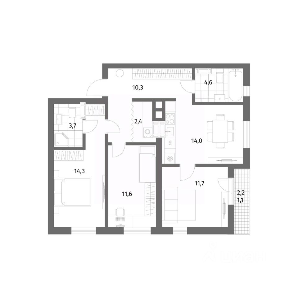 Продается квартира площадью 73.7 м² на 7 этаже 1 секции в Речной парк от компании ГК "ТРЕСТ". Площадь кухни 14 м².