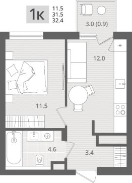 Продаётся 1-комнатная квартира в строящемся доме (Дом 1.1), срок сдачи: IV-кв. 2026, общей площадью 32.4 кв.м., на 4 этаже. Новый жилой комплекс "МОре" от Строительной компании "Меркурий" расположен по адресу: Калининградская область, г. Пионерский, пос. Рыбное.