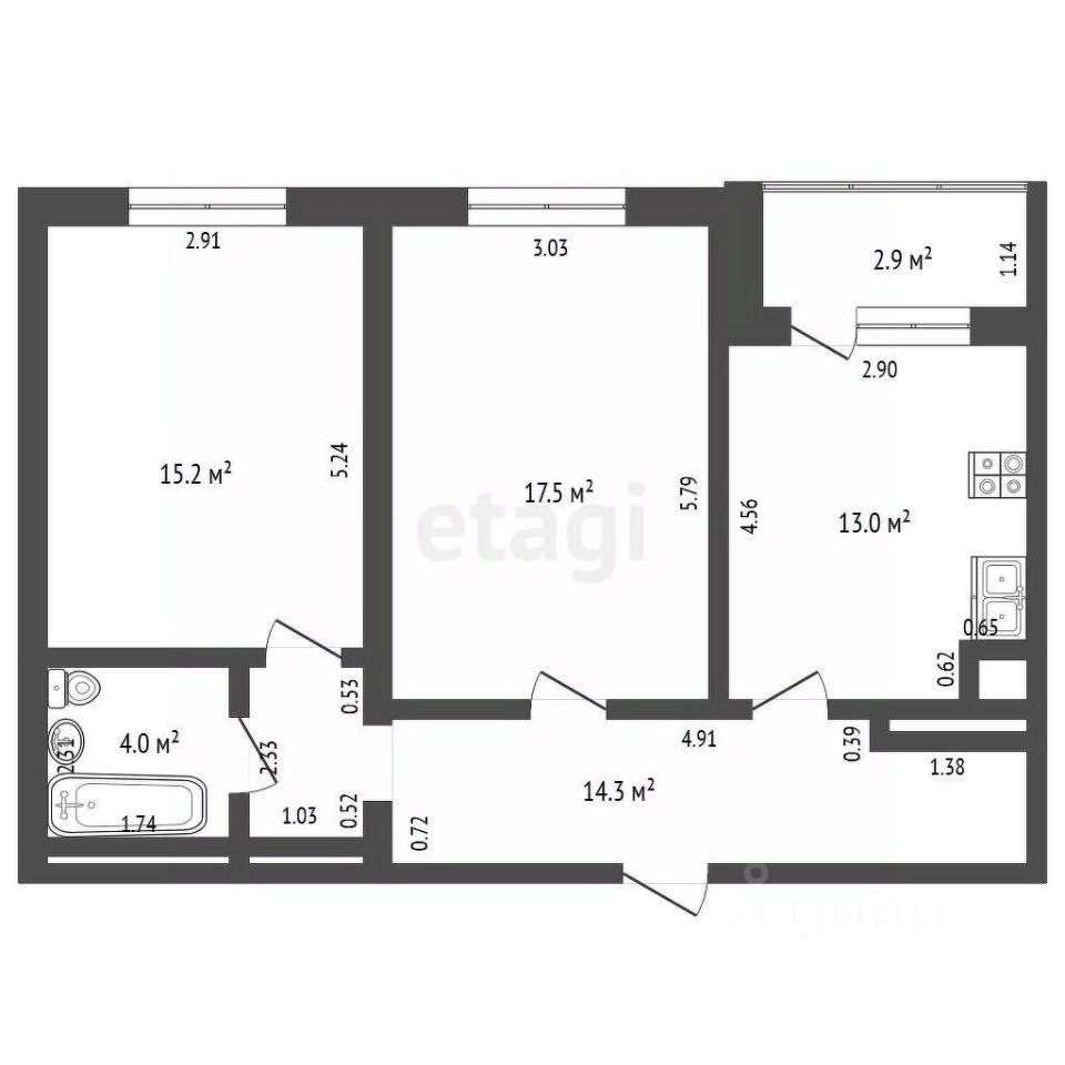 Площадь квартиры 64 кв.м (без учета лоджии):