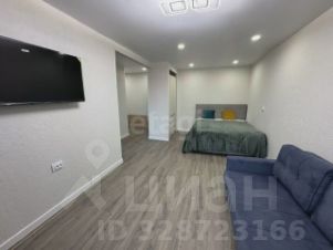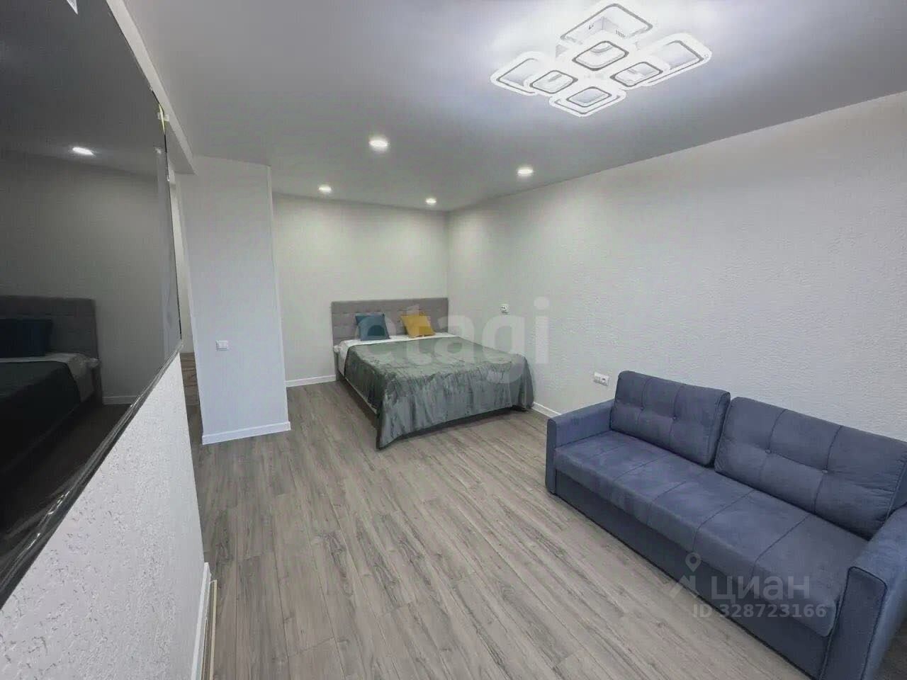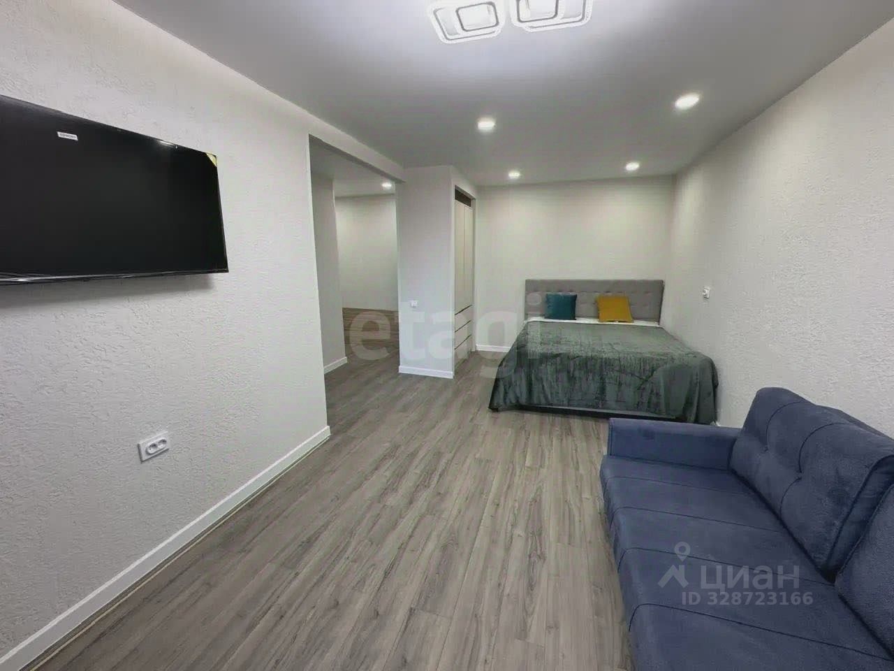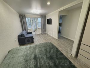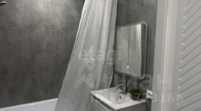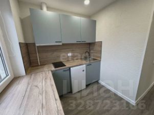 В квартире одна большая комната с выходом на балкон, откуда открывается вид во двор. Кухня оборудована современной мебелью и техникой, включая стиральную машину. Санузел совмещенный, выполнен в актуальном стиле.