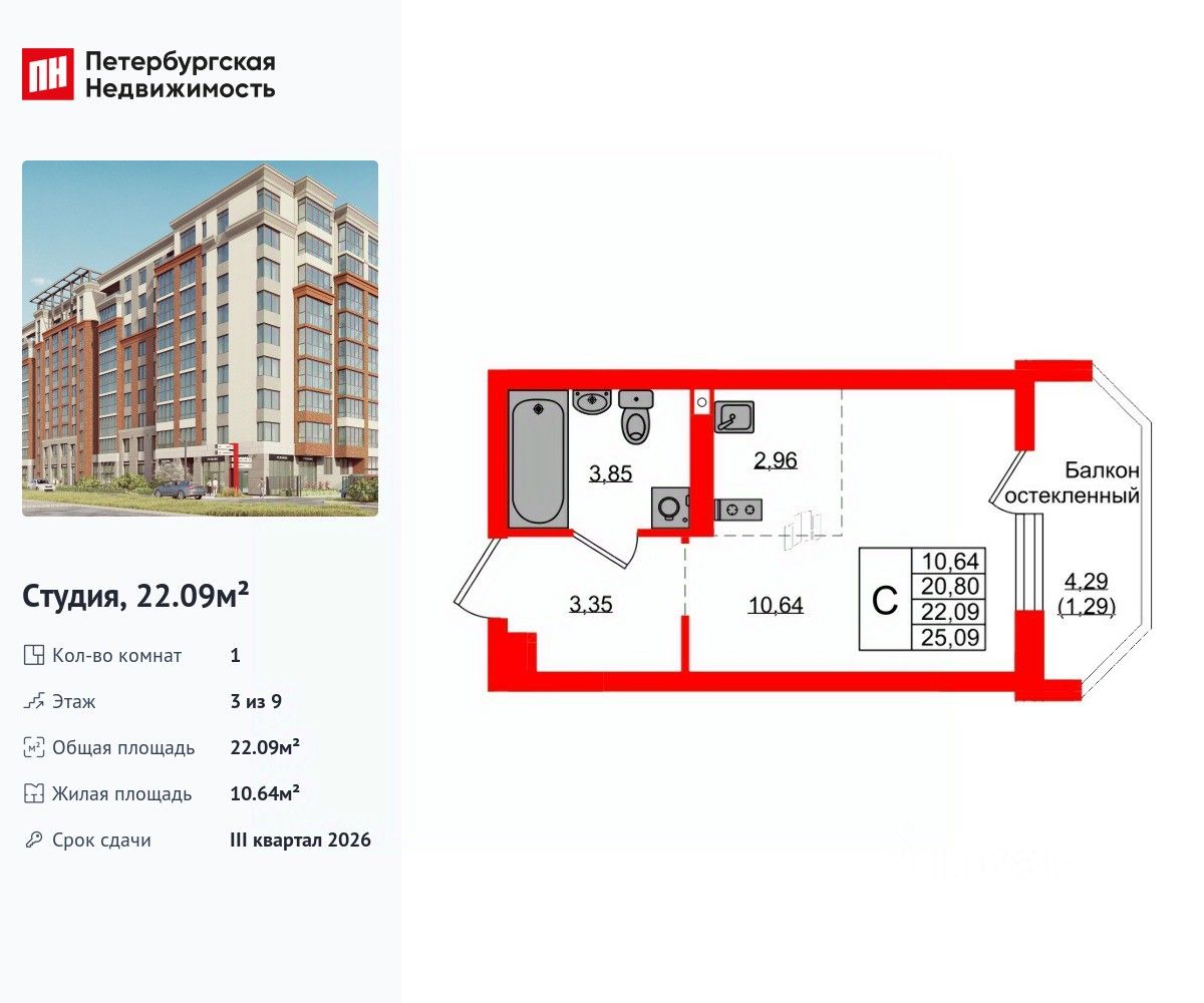 Продается уютная студия в жилом комплексе "Консул" в Ленинградском районе. Удобная, классическая, функциональная европланировка, большая кухня-гостиная 2.96 м², просторная прихожая 3.35 м². Общая площадь студии - 22.09 м², жилая 10.64 м², высота потолка 2.7 м. Квартира продается с отделкой "Серый ключ с возможностью дозаказа NORD LINE ++". Что особенного в ЖК "Консул"? • Развитая инфраструктура • Двор без машин • Закрытая, огороженная территория • Квартиры с отделкой - заезжай и живи • Детские площадки для детей разных возрастов • Подземный паркинг и кладовые помещения