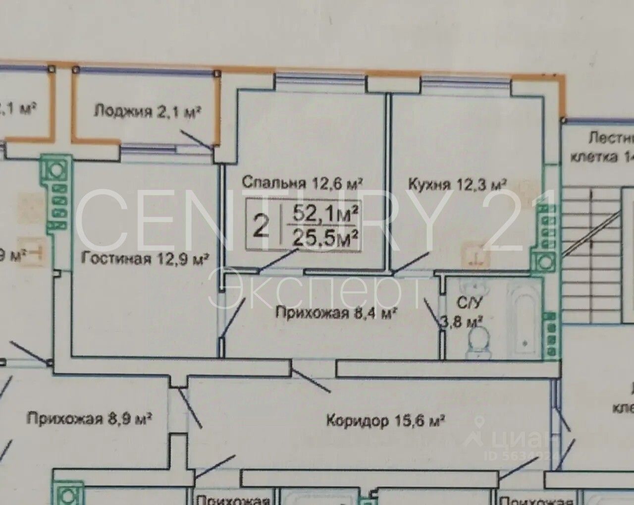 - две светлые изолированные комнаты 12,6 и 12,9 кв.м.;