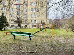 Очень тихий и уютный двор с зелеными насаждениями и детской площадкой.