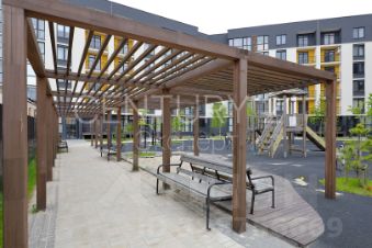 Территория комплекса огорожена, во дворе нет машин, что гарантирует безопасность и приватность.. Здесь для удобства жителей есть стильно оборудованное пространство для отдыха, прогулок, игр с детьми и занятий спортом на современных многофункциональных площадках..