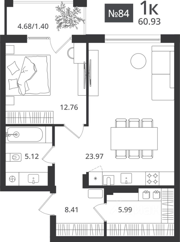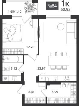 60,93 м²