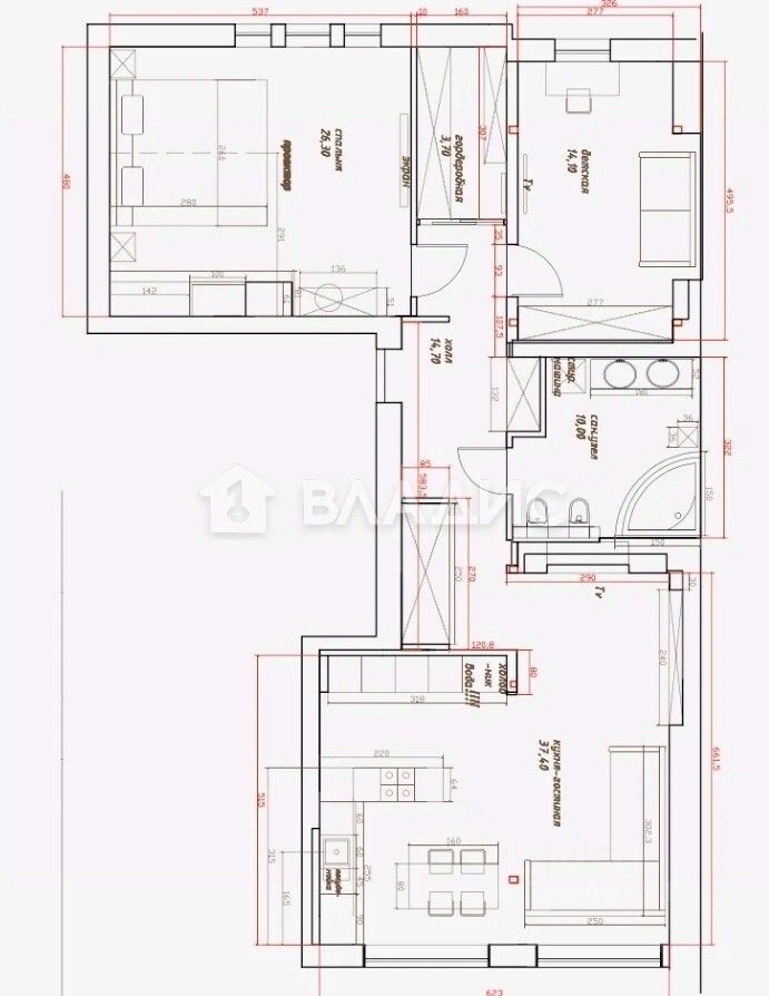 Две изолированные спальни 14,1 + 26,3 кв.м