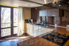 Кроме того, в квартире установлена система сигнализации, а автономное отопление оснащено системой климат-контроля. Все радиаторы люкс линейки бельгийского бренда Jaga.