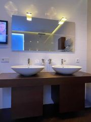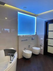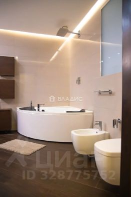 • в ванной комнате тв, стирально-сушильная машина, итальянская ванна Blu Bleu для двоих , смеситель Axor тропический душ, теплый пол, биде, две раковины.