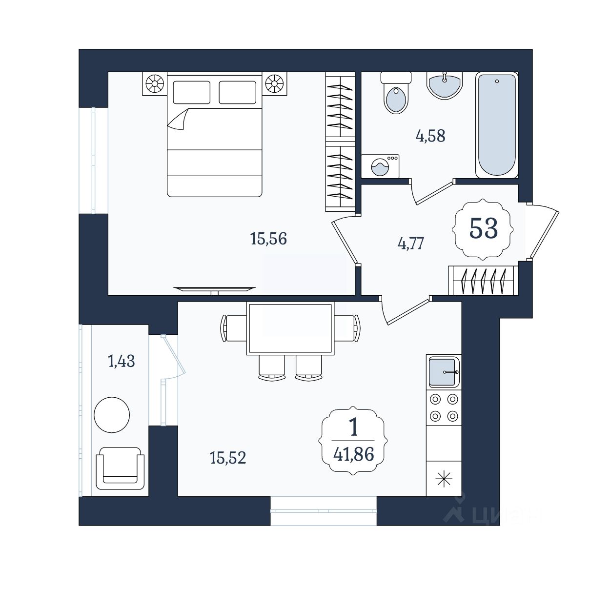 Общая площадь41,86 м²