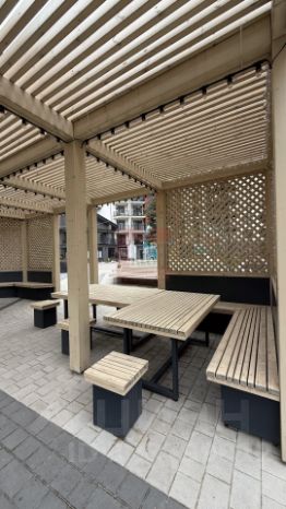 Территория внутреннего двора огороженная и охраняемая, с системой видеонаблюдения, автоматизированный доступ на территорию. Эксплуатируемая кровля для отдыха. Детские площадки для детей разного возраста без машин с антитравматическим покрытием, футбольное поле, теннисный корт на территории, беседки. Поющий фонтан.