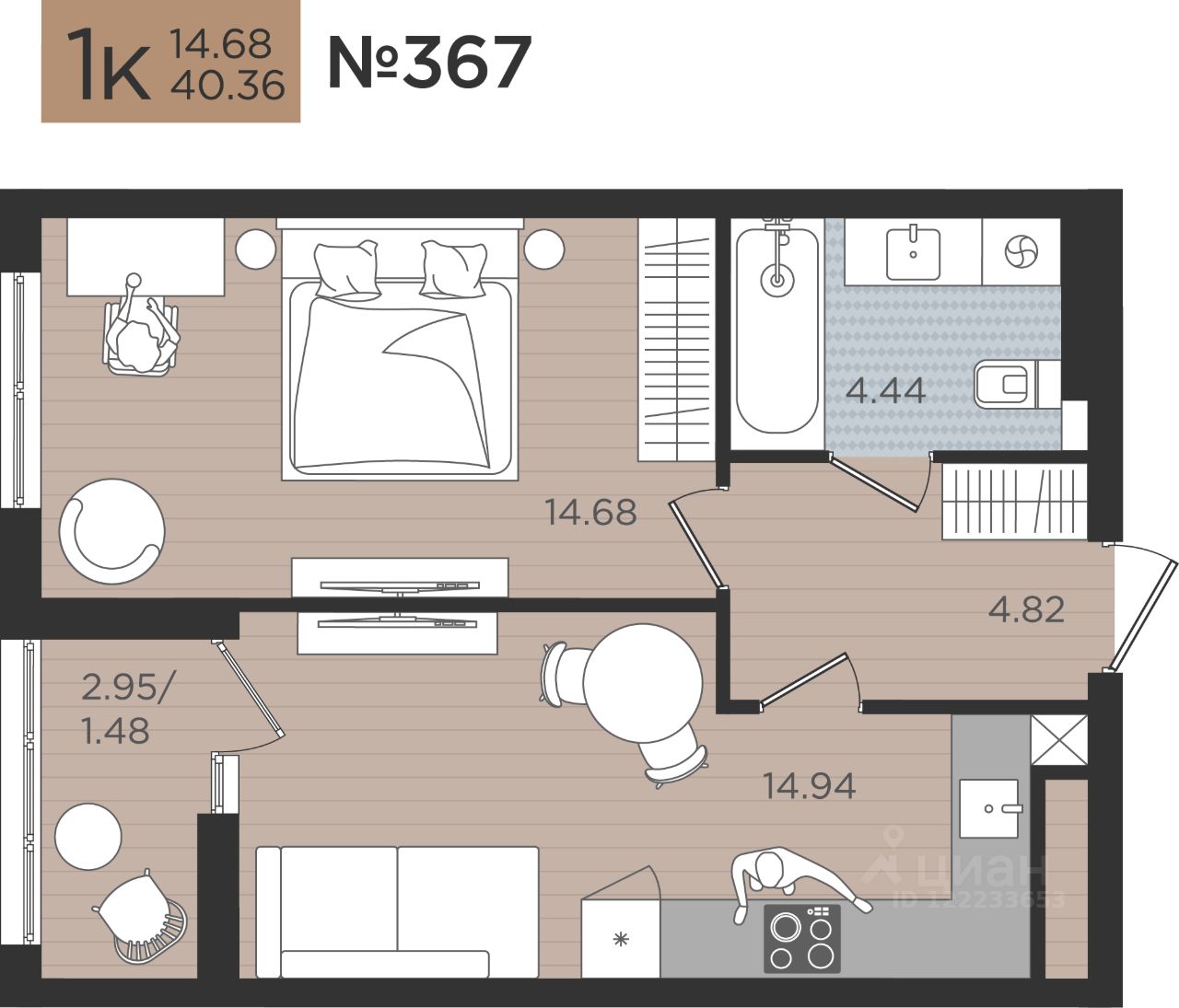 Продаётся комфортабельная 1-комнатная квартира 367 на Советском проспекте, 50 в ЖК "МОЙ ГОРОД"