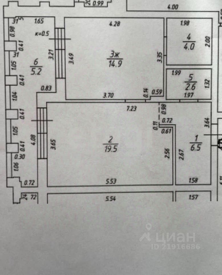Общая площадь 52,7 квадратных метра.