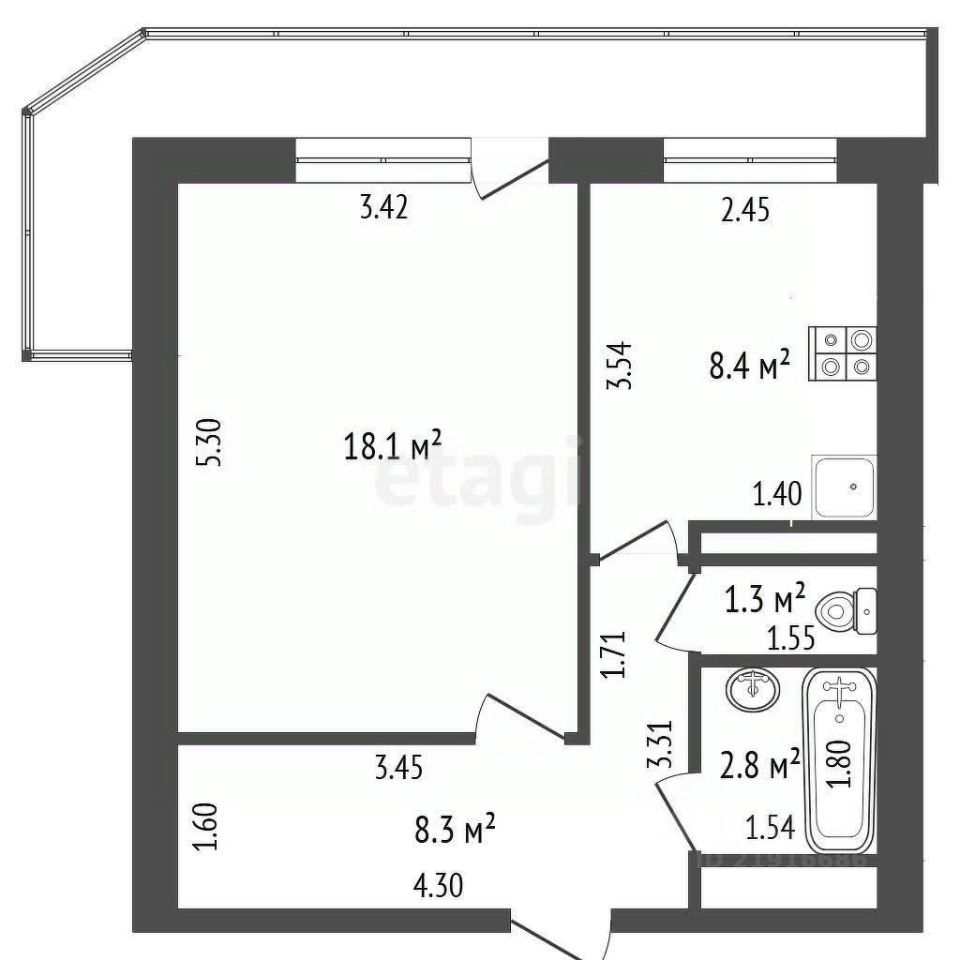 Внутри вас ждет светлая комната, функциональная кухня площадью 8.4 кв.м., а также раздельный санузел, что добавляет удобства в повседневной жизни.