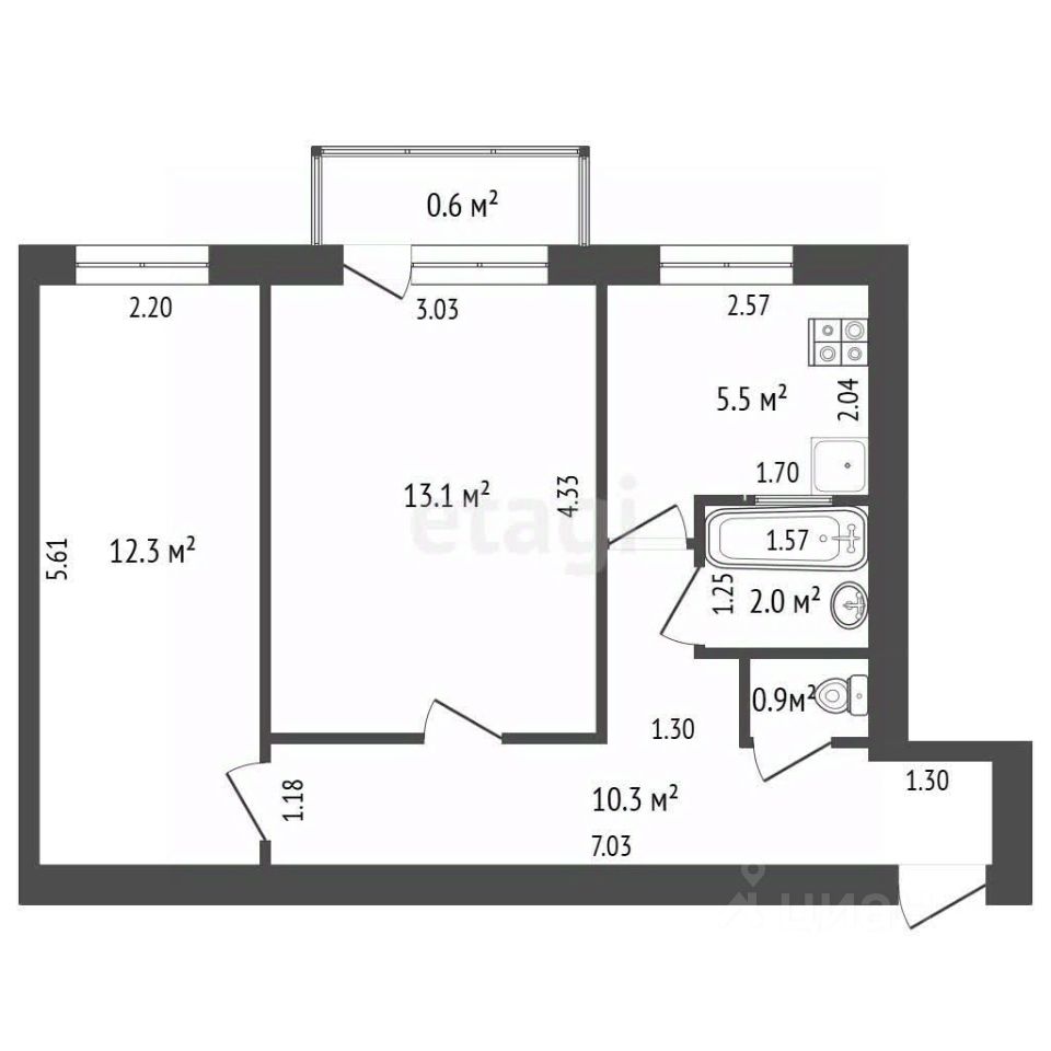 • Планировка: две раздельные комнаты, просторная кухня, раздельный санузел