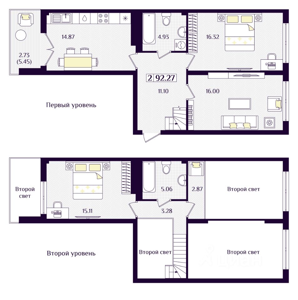 Общая площадь92,27 м²