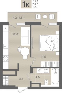 Общая площадь32,8 м²