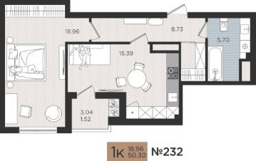 Продается комфортабельная 1 комнатная квартира 232 на Советском проспекте, 50 в ЖК "МОЙ ГОРОД"