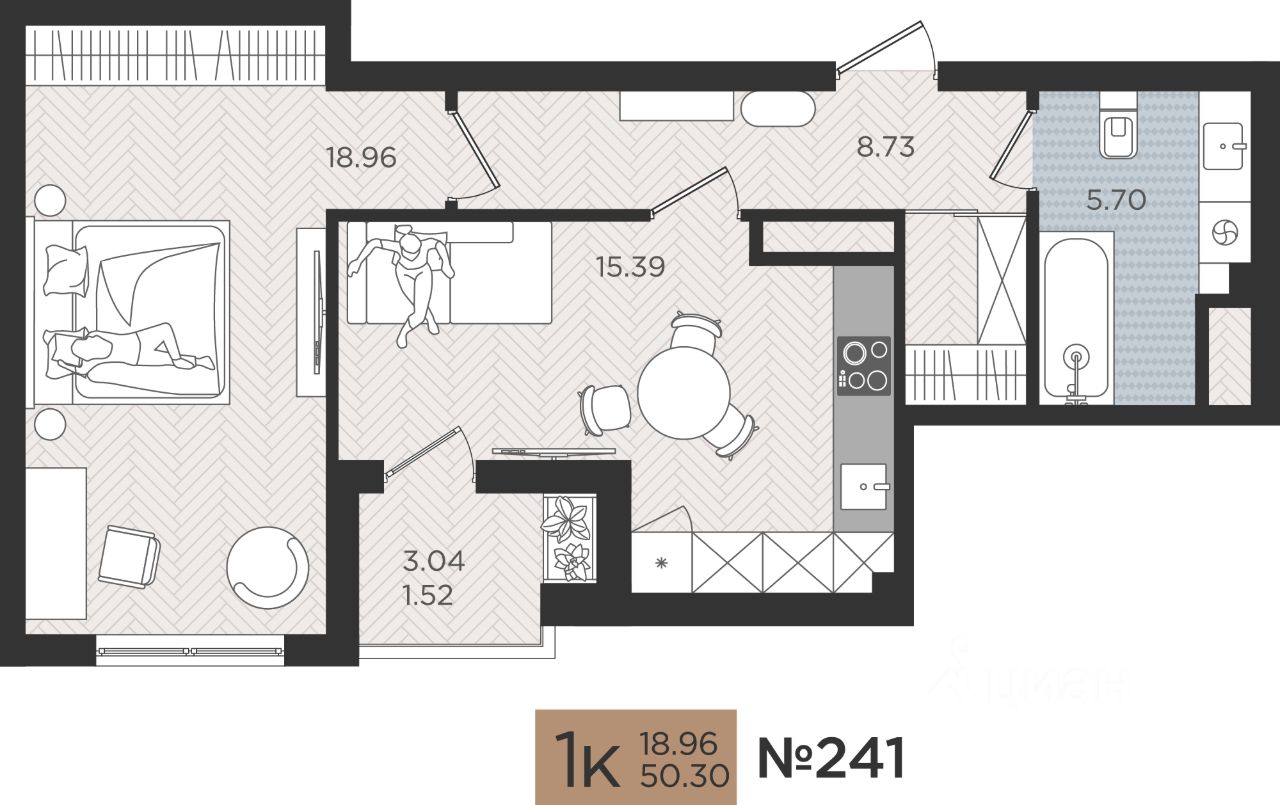 Продается комфортабельная 1 комнатная квартира 241 на Советском проспекте, 50 в ЖК "МОЙ ГОРОД"